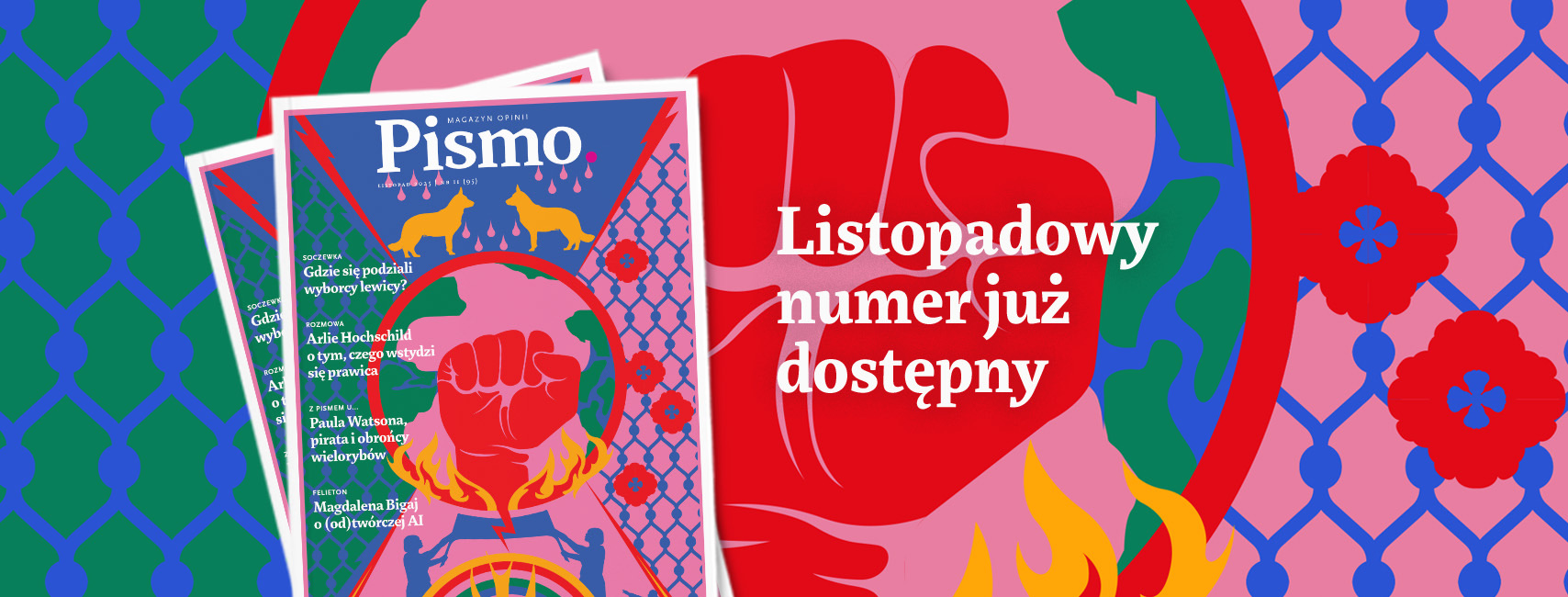 Kupując prenumeratę z dostępem online lub sam dostęp, możesz czytać i słuchać wszystkich treści zarówno z aktualnego numeru w serwisie, jak i z całego cyfrowego archiwum. Dzięki subskrypcji możesz ponadto pobrać wydania na czytniki (pliki PDF i EPUB) i wersję audio. Wszystkie artykuły z miesięcznika są czytane przez lektorów i lektorki. Czytaj i słuchaj treści z „Pisma” jak Ci wygodnie, także za pomocą aplikacji. Szczegóły oferty znajdziesz na stronie magazynpismo.pl/prenumerata.
