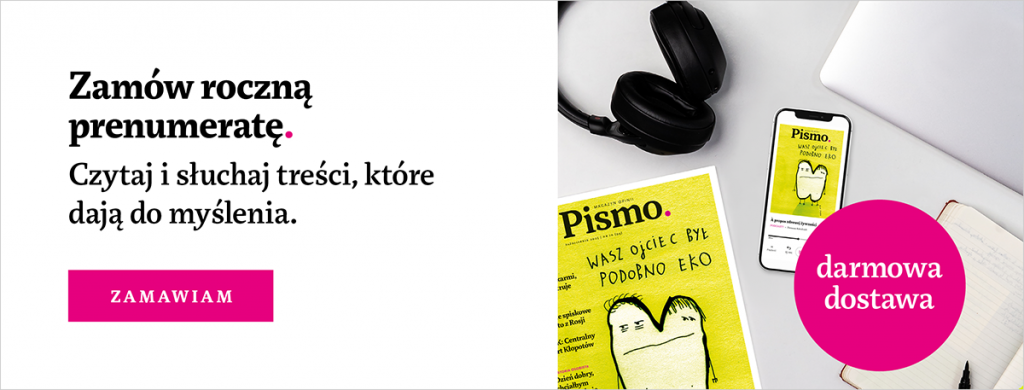✎ co miesiąc najnowszy drukowany numer „Pisma” (Twoja prenumerata rozpocznie się w przyszłym miesiącu, dostęp online do treści z najnowszego numeru i do całego archiwum otrzymasz od razu),