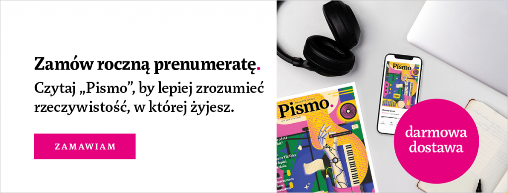 Prenumerując „Pismo”, pomagasz rozwijać magazyn, tworzyć ponadczasowe, najwyższej jakości, sprawdzone treści, które nam wszystkim pozwalają lepiej zrozumieć świat i naszą w nim rolę.