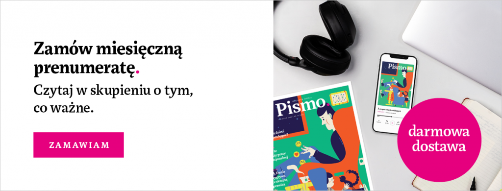 Prenumerując „Pismo”, pomagasz rozwijać magazyn, tworzyć ponadczasowe, najwyższej jakości, sprawdzone treści, które nam wszystkim pozwalają lepiej zrozumieć świat i naszą w nim rolę.